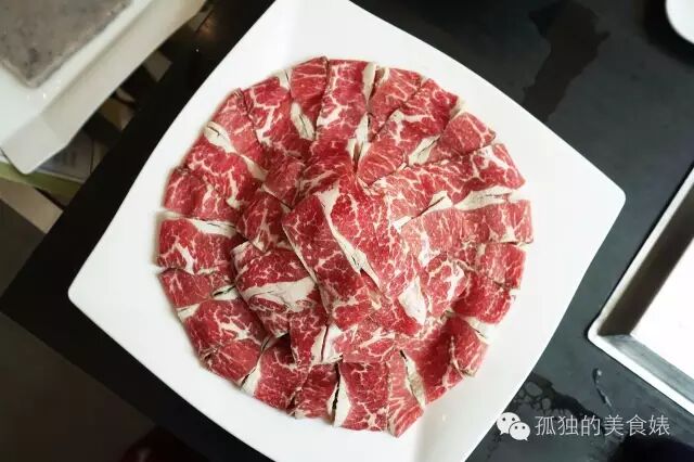 四方九格的雪花肥牛肥瘦均匀,雪花分布得超好看,好吃!