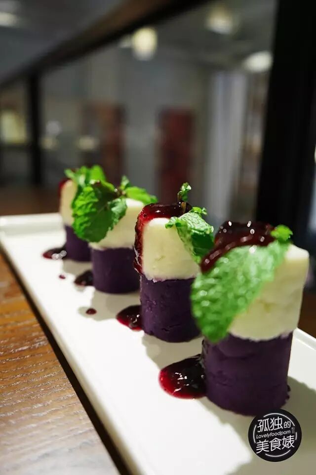 榕意的蓝莓山药作为饭后甜品不能更赞,淮山紫薯淋上蓝莓酱,微甜一点也不腻。
