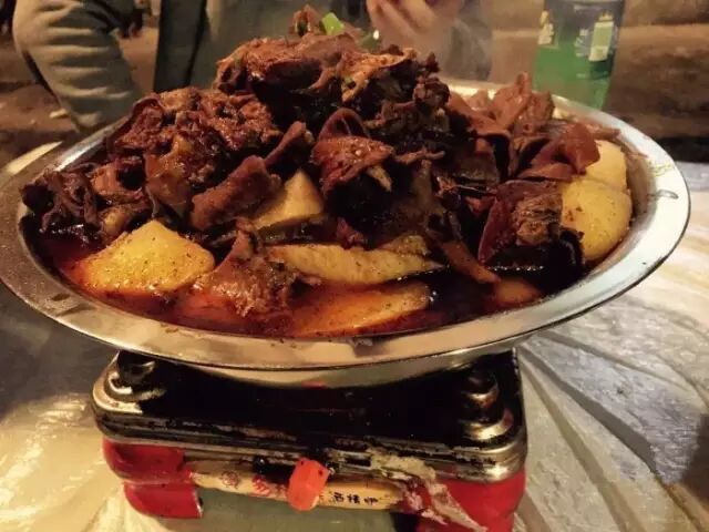 ☞老妈烧菜馆,这家主打牛板筋,招牌上写着“牛板筋大王”,据说一头成年牛的板筋只有大约300克,烹饪难度相当高。牛板筋汤底油红,和芸豆一起烧制,冬瓜打底,黄色的牛板筋切成了厚厚的片状,炖得很烂,但又保留了几分嚼劲,吃起来呈丝缕状,很入味。打底的冬瓜吸收了牛板筋的香味,又保留了冬瓜的汁水,口感非常丰富。