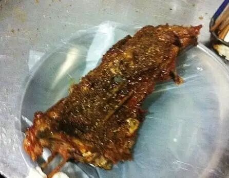 ☞户部巷有名的一根排骨,不用去排队吃了!一整根排骨做成小吃,美极、黑椒、番茄、香辣4种口味。排骨烤得很香,肉质脆中带嫩。