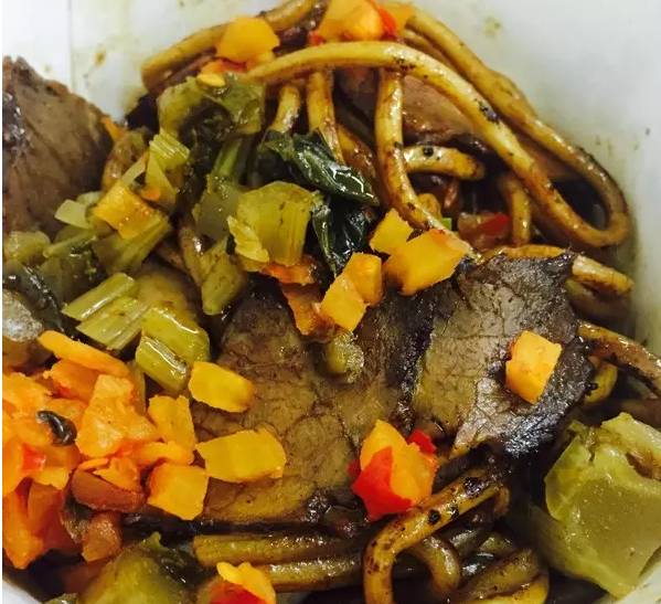 ☞三狗牛肉面,他家永远都是一锅只会炒一份。因此每一份炒面的味道几乎都不一样。浓厚的酱料看起来很油腻,其实不然,滋味浓郁的酱料均匀地附着在每一根面条上。