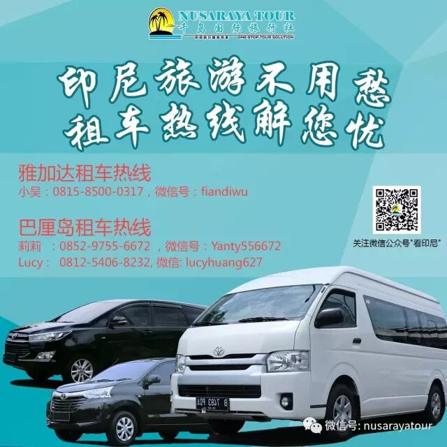 印尼一手专业中文地接旅行社(雅加达、巴厘岛地接社),主要业务:商务与公务接待,会展承办与接待,企业注册与变更,签证办理,机票酒店预订,租车,旅行服务,自由行,提供巴厘岛婚礼策划与婚纱摄影、婚纱租赁服务。