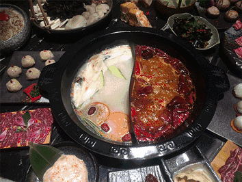 一口红锅涮毛肚、烫鹅肠