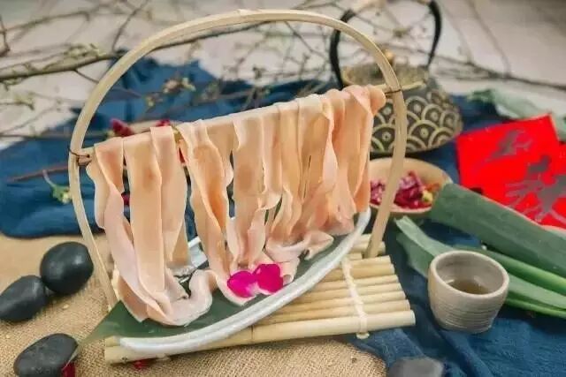 夹几片切得薄如纸的羊肉放入翻滚火锅一烫,