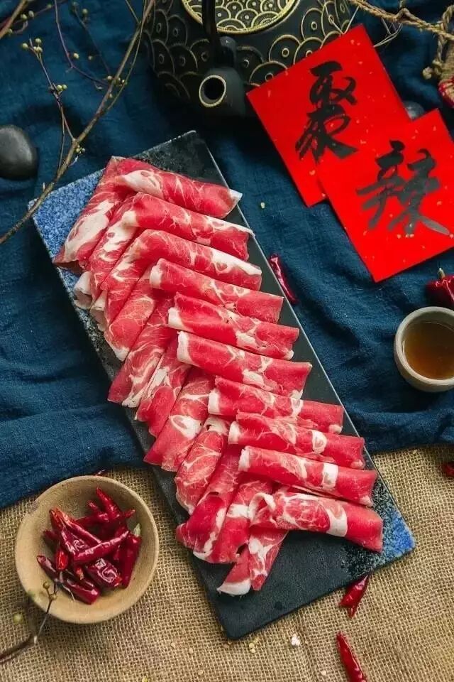 光鲜通红的牛油上看来油亮诱人