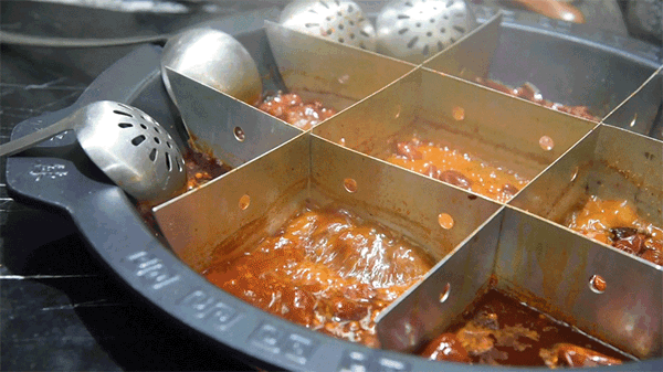 将一个锅分成了九格以便不同的食客食用,