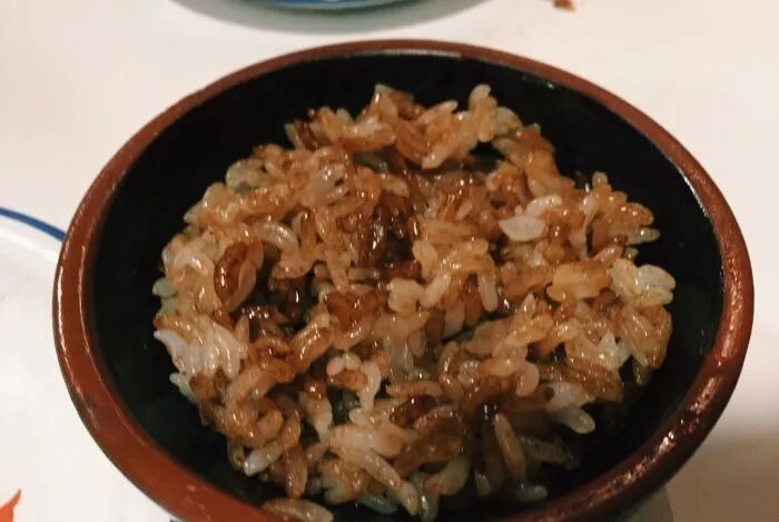 酱油拌饭,其实分为三层,最上层是米饭、中间是酱油、下层藏着猪油。一搅拌,三者合为一体,散发出浓浓的香味,米粒饱满有嚼劲,酱油综合了猪油的腻味。