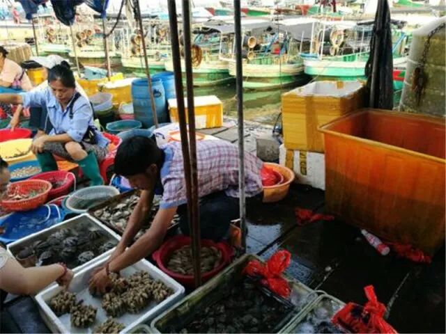 生猛的大龙虾、青蟹、海马、马鲛鱼、对虾、鲍鱼、象拔蚌等海鲜应有尽有,偌大的市场,各地口音的讨价还价声此起彼落,热闹非凡。