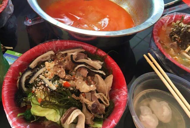 走累了,来一碗铺前名吃——糟粕醋。这道风味小吃是用酒糟,加以少许辣椒、蒜头油等煮开,配上海带丝、荞头、牛杂或海鲜等制成,酸辣开胃,很受欢迎。热情好客的老板送了一份手打的鱼丸,鲜甜无比。