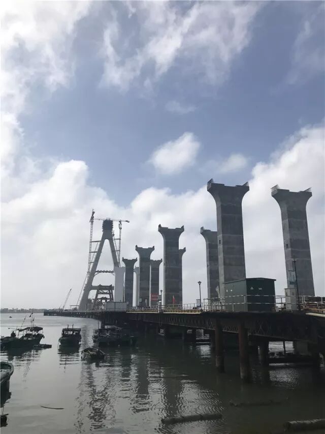 已经是中午,施工人员仍在有条不紊的进行作业。站在桥头,可以看到主塔已现雏形。依这个进度,明年年底是绝对可以通车了,通车后海口到文昌只需要20分钟,来往更便捷了!相信这座桥也将给这个滨海古城带来更多的发展机会。