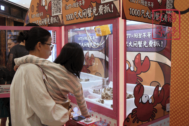 还在湖滨银泰In77的娃娃机里放置了1000+只螃蟹,让所有人疯狂。