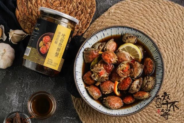 现在,阳澄不等不再止于大闸蟹,他们开始和国内顶级的名厨合作,将他们顶级的料理分享给大家。于是有了醉不等手作花雕熟醉蟹、冰镇熟醉小龙虾、吮指香辣蟹、蟹粉酱等自研产品,以及卢新龙井,食神酱鸭等联名产品,他们的目标是满足越来越少做饭的新中产阶级对于优质美食的追求,让用户在家就能吃到不贵的顶级料理。