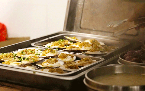 蒜蓉粉丝蒸扇贝个个体型肥硕,肉质紧密新鲜。咬上一口,香浓美味的细腻口感让人无法自拔。还好是自助,吃完一盘可以立马补货。
