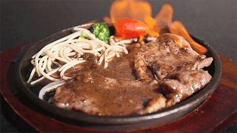牛排在铁板上制作,想吃几分熟告诉服务员即可。小七格外喜欢黑椒口味的,在铁板上滋滋作响,口感柔嫩,一口吃下去,还有浓郁的肉汁!