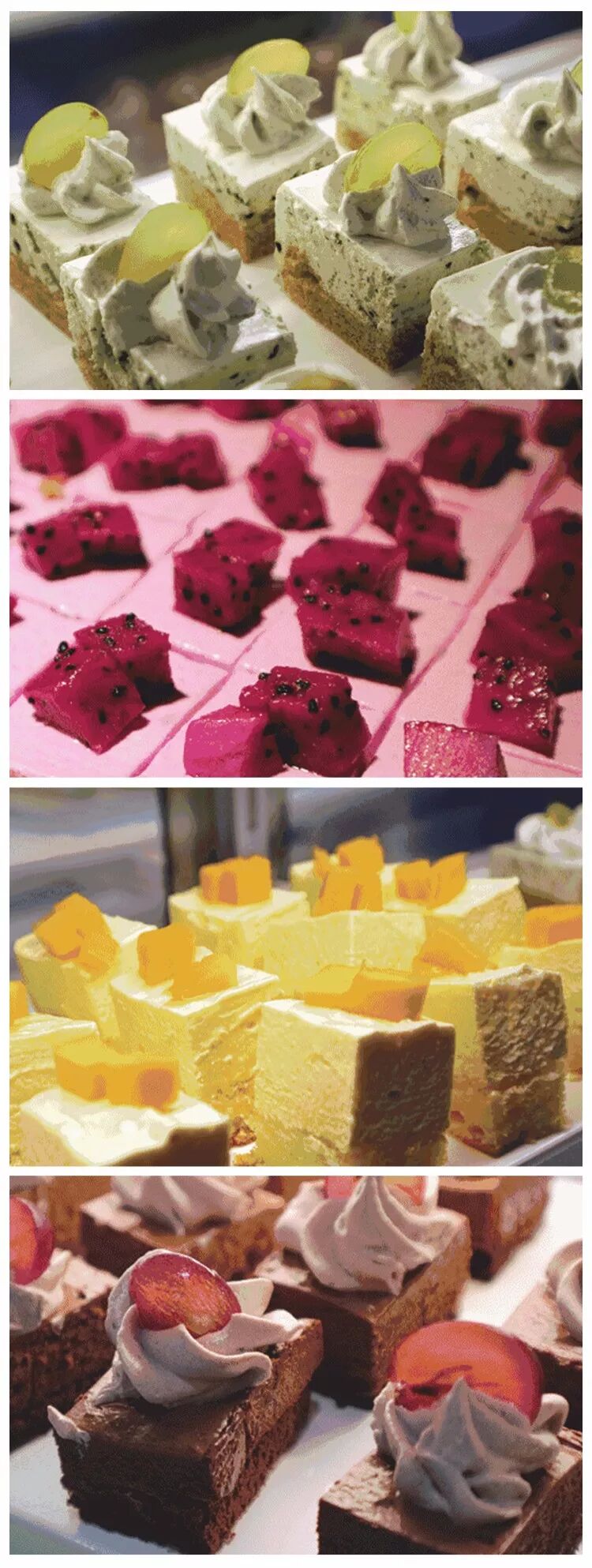 多种口味的淡奶油小蛋糕上面点缀着新鲜水果,用的奶油甜度适中。甜品一直被小七奉为治愈系美食,心情不美丽的时候,甜食就是让你恢复心情愉悦最快的特效药~