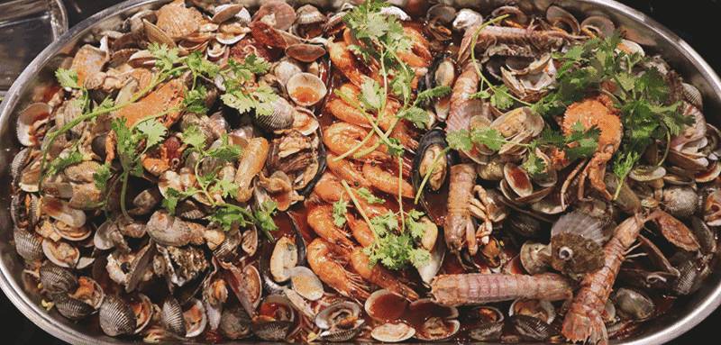 在这里吃海鲜不用担心囊中羞涩,只管敞开吃,被刷洗干净的螃蟹和皮皮虾整齐的铺满在海鲜区,在小火锅里咕噜咕噜的煮上一会儿,让你分分钟吃回本儿。