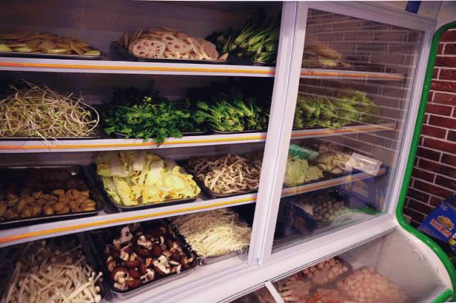 各类涮菜也是摆了满满一冰柜,涮火锅的配菜也很齐全,羔羊卷、肥牛卷、各种蔬菜和丸类都能吃到。还有各种酱料,助攻火锅的美味。