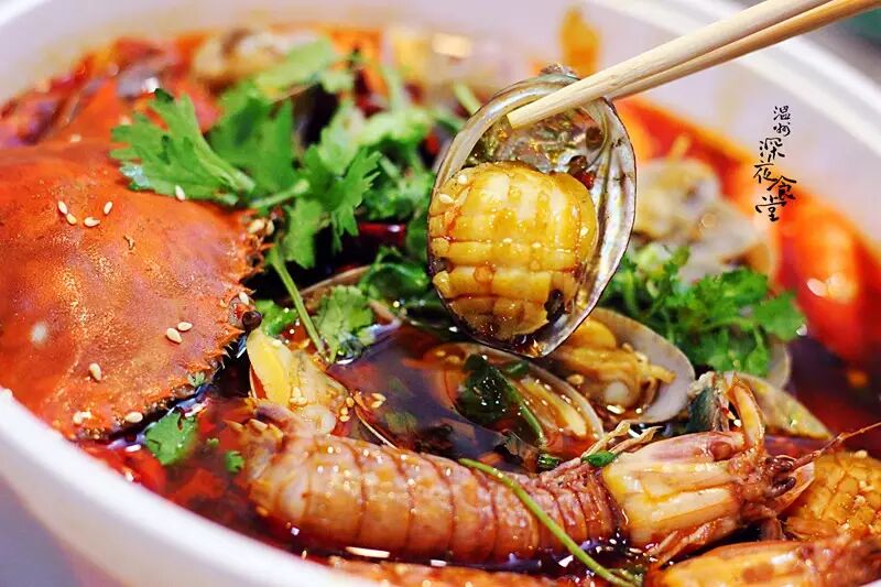这一锅,有鲍鱼,有虾姑,有鲜虾,有螃蟹,有花甲。食材摆满整锅,但是食堂君想说的是,这里面有加年糕你造么!