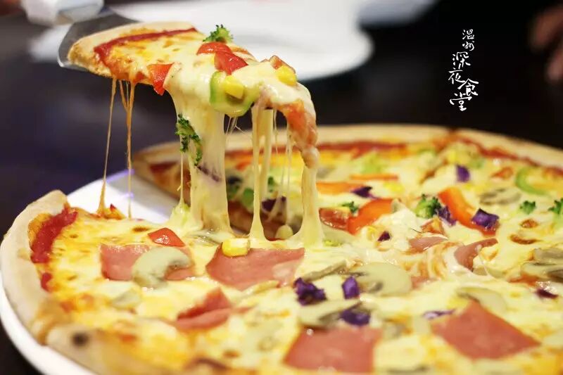 切片拿起时,芝士整片拉丝,咬下一口,芝士香加上鲜嫩多汁的蘑菇瞬间挑逗了味蕾,你还可以感受到薄饼的的厚度和松脆度,口感爆棚。