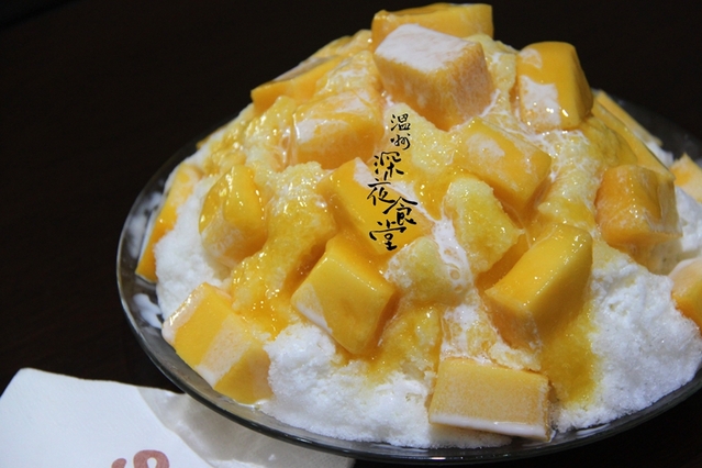 成熟度最棒的金煌芒果,切成大块,再淋上新鮮芒果调制的芒果酱和新鲜牛奶炼乳调制的奶酱,冰足够细,入口即化。