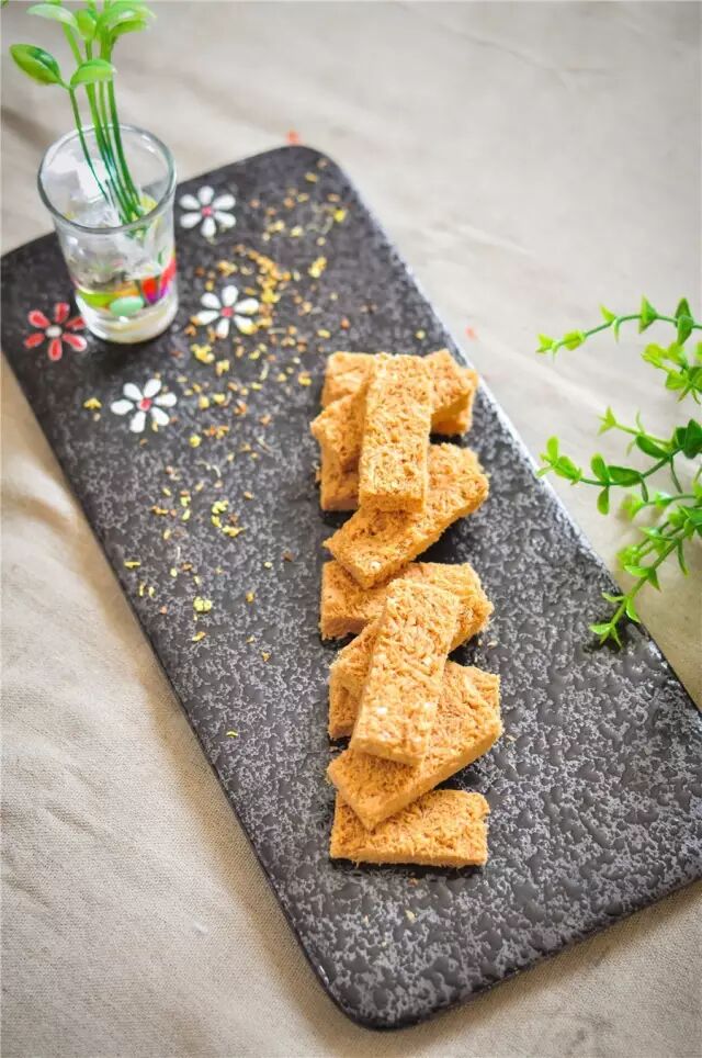 传承着独特的工艺,里面是纯纯的鸡蛋的味道,入口香香酥酥。表面抹了一层桂花糕。脆脆的别有一番风味。