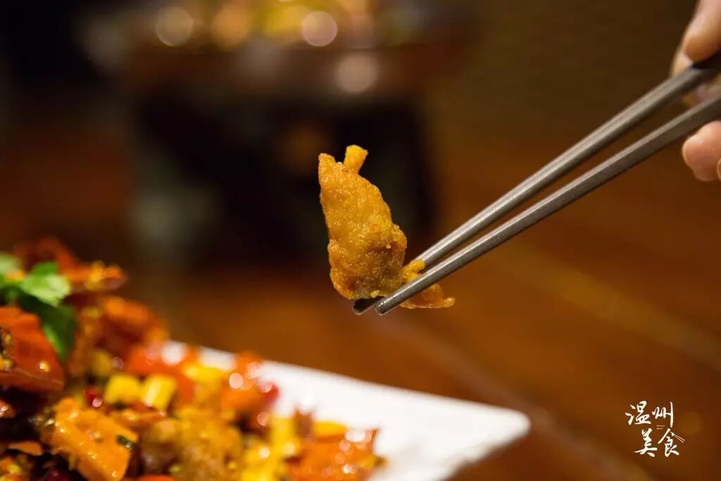 美食君正奇怪着这鸡的味道怎么不像鸡肉,一问才知道原来这是田鸡的“鸡”,多达四种辣椒制作而成的酥脆田鸡肉,即使你不爱吃辣也无法拒绝它的美味。