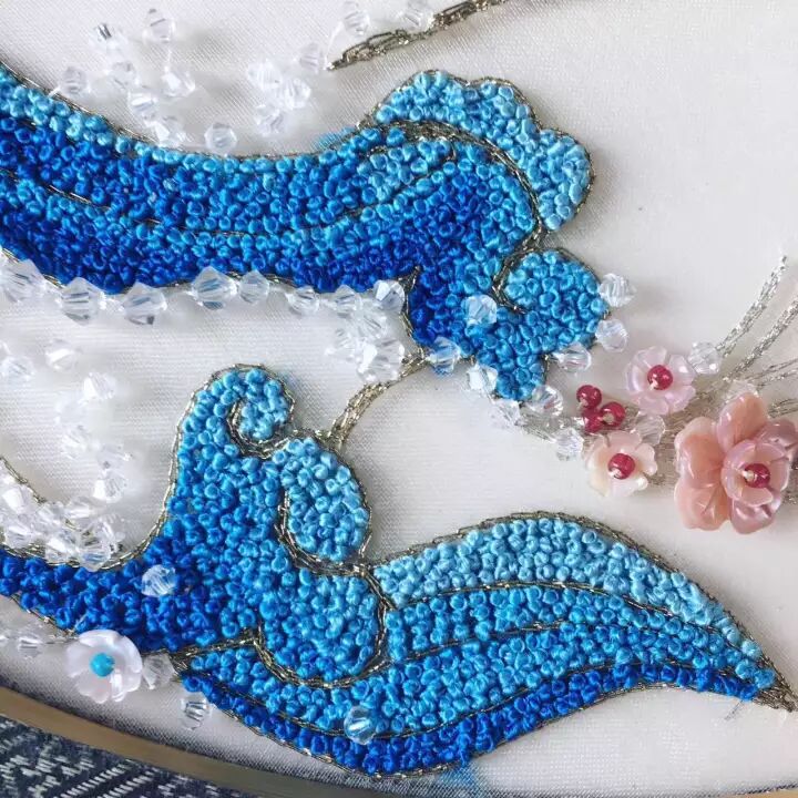 她将钩针刺绣、印度丝绣、法式刺绣等