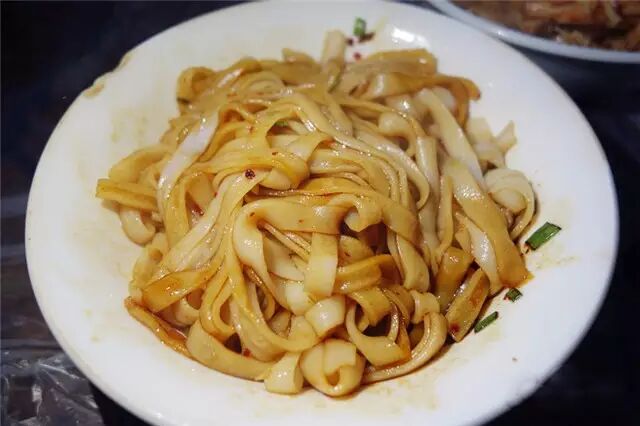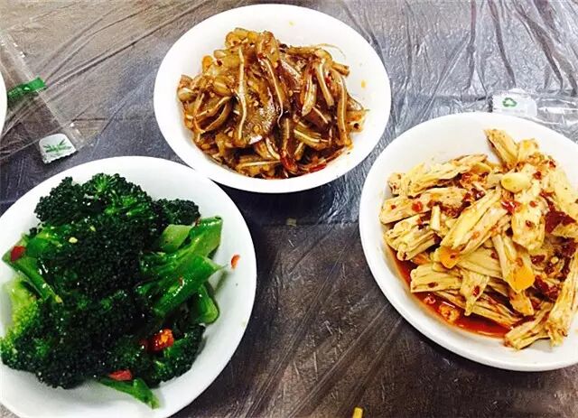 凉菜是店内的主打,口味略辣,吃起来很带劲。有大小份之分,整整齐齐地罗列在摊位上,任君挑选。新鲜的蒜苗、清脆的藕丁、爽口的花菜……总有一款会抓住你的胃。在店内如果单点凉菜的话,人均10块都够了。