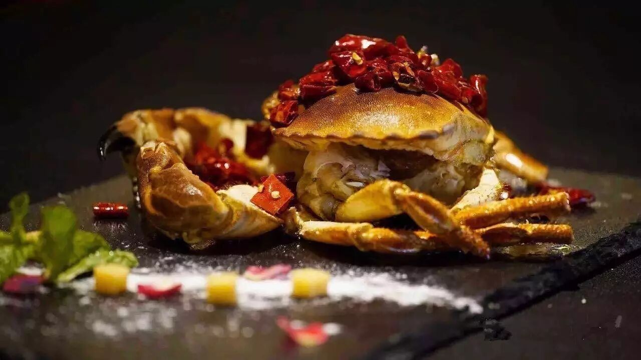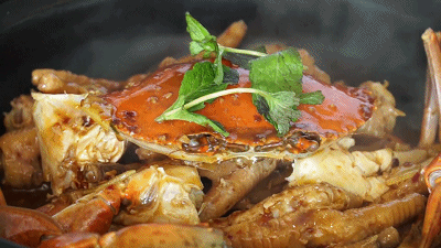 香辣蟹焗凤爪最好选用正当时节的大肉蟹,肉满黄肥的螃蟹,配上大而厚实的凤爪,一口辣的开胃,二口爽的找不着北。这蟹煲还有个特别之处,就是这是一道养生的菜式,里边是没有调味酱汁的,除了香辣味,其余都是食材本身所带来的鲜香美味。