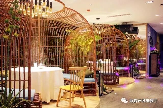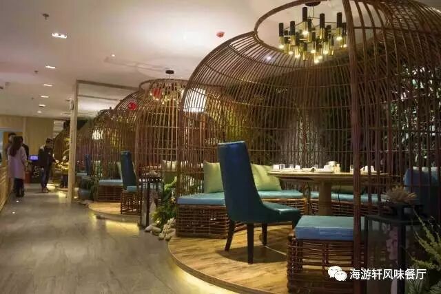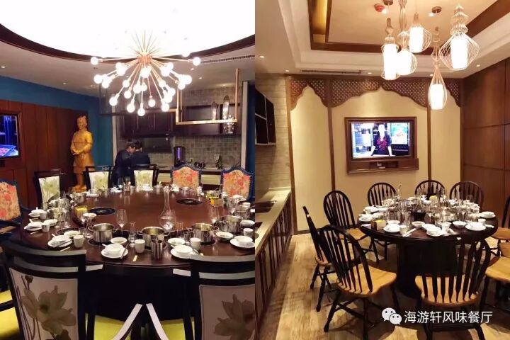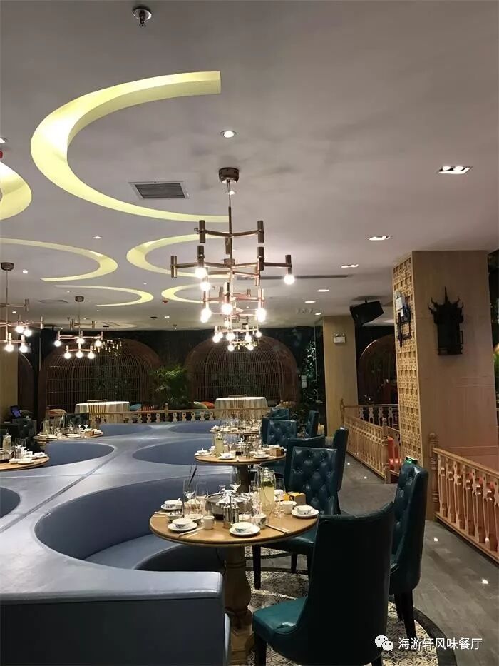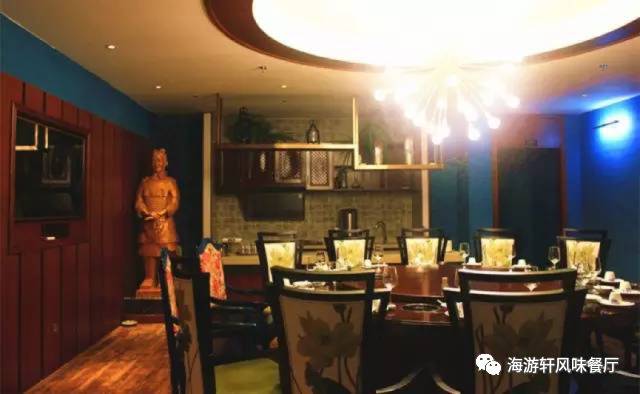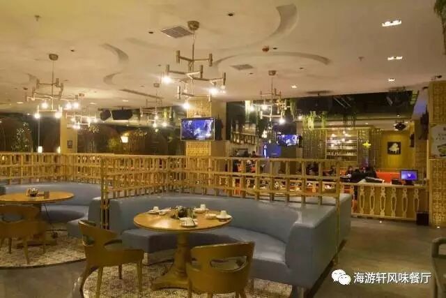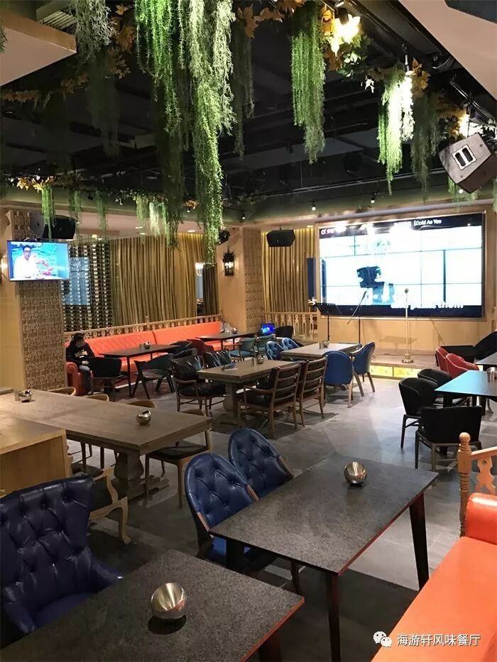 海游轩餐厅用餐环境舒适、有吧台、有舞台、还有鸟笼卡座,更有容纳 10-18 人的 VIP 包间