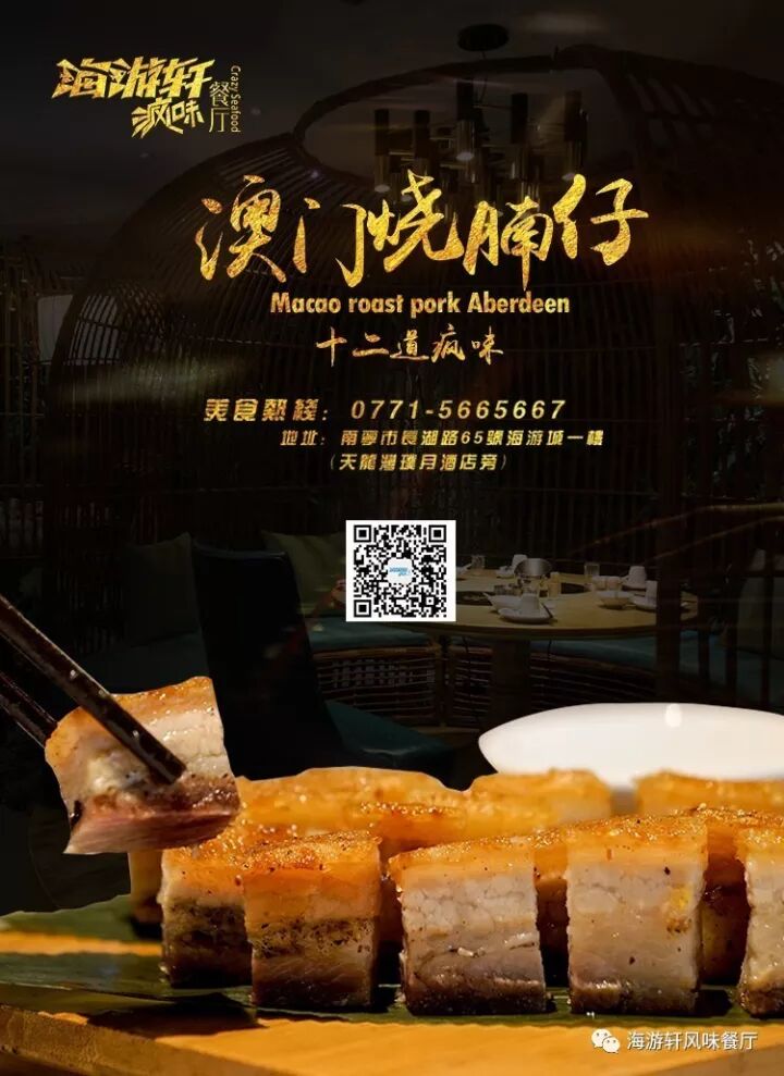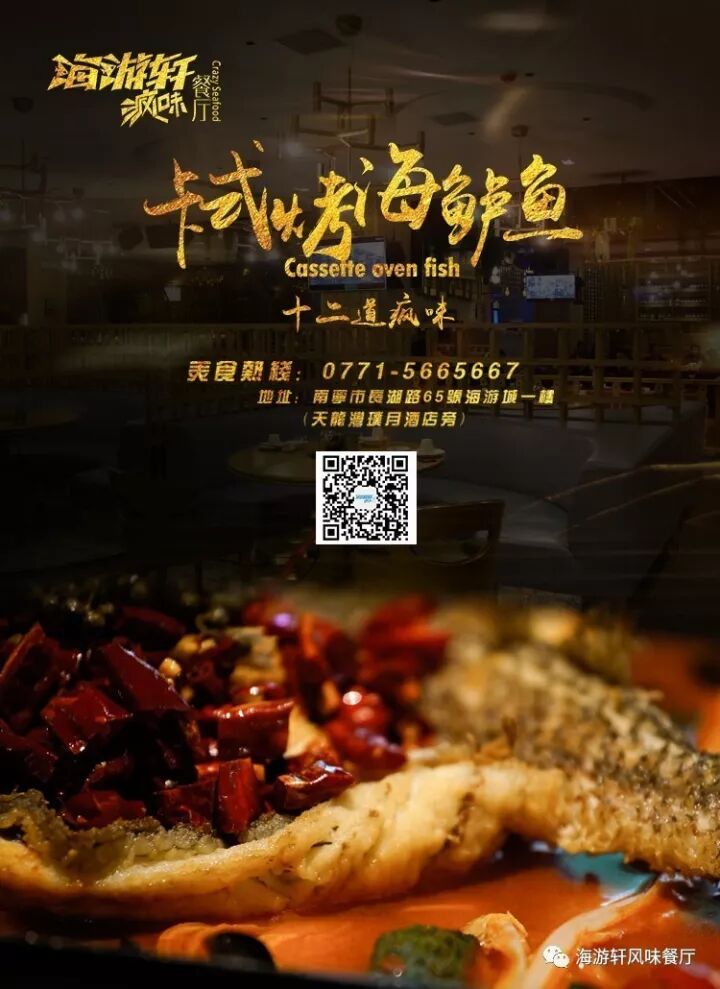 海游轩疯味餐厅牢牢抓住粤菜尊重食材的精髓,只选用产地最适合,当时最新鲜,要求最严格的顶级食材,同时融合粤式精华与本地桂菜口味,并与其他菜系及西方烹饪文化相结合,全面提升了传统粤菜海鲜的口味、摆盘及意境,把疯狂追求粤菜烹调极致的思想融入了每一道菜品之中,打造了新派粤式海鲜风格的疯味料理。