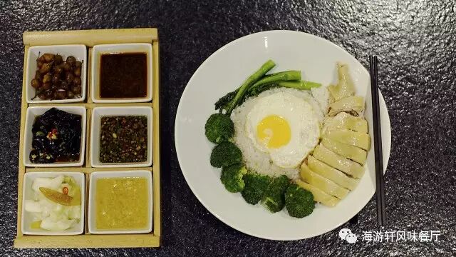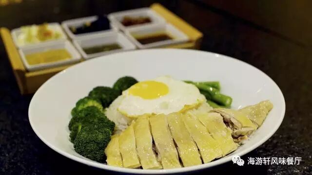 海游轩所选用的是来自海南省的走地鸡,以白切的的做法烹制,搭配上特制的海南酱汁一同食用,更有疯味。