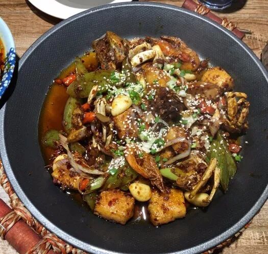 水煮肉片和毛血旺,都是著名的川菜,自然要尝一尝,乍一看还以为是一道菜呢。总体来说比较满意,虽然加了很多花椒,个人感觉还是不够麻,而且稍微偏咸。