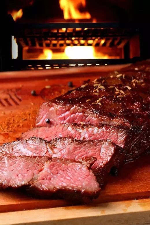 果木烟熏牛扒:采用水果木为燃料,在专业制作的窑炉里充分燃烧,使窑炉温度能达到六七百度的高温,厚薄均匀的牛扒在窑炉的烤板里,高温瞬间锁住牛肉的水份,充分保留了牛肉的肉汁和营养成份,牛肉充份吸收了果木散发出来的原香味道,牛排刀只要轻轻的切入,鲜嫩丰胰的肉汁“吡”的蜂涌而出,饱满的颜色映入眼帘,让你欲摆不能……这是闻名遐迩的果木烟熏牛排。