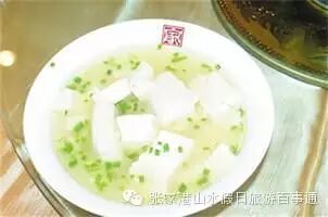 3 把切成大块的豆腐片放入菜汤中,可以加入少量鸡精提味,3-5分钟起锅。