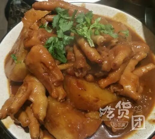 压锅鸡手,如果喜欢吃鸡手,一定要来一份,很大一盘,鸡手肉很烂,未脱骨,但是随便两口就能分离出骨头,里面的土豆也非常入味。