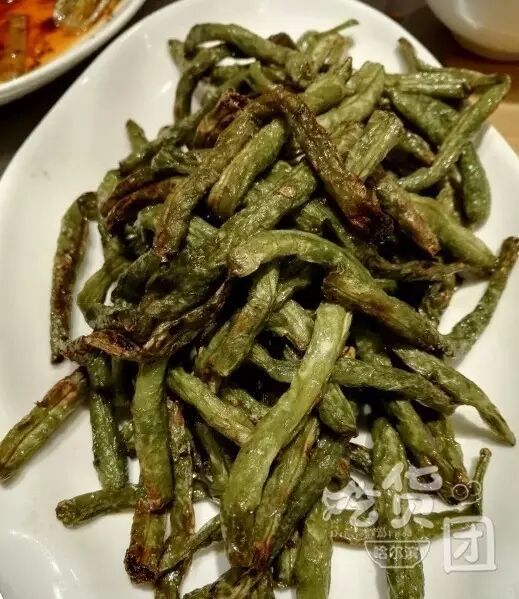 干煸豆角,一盘全是豆角,看不到任何配料,连酱和红辣椒都没有,味道竟然不错,不算辣,略咸,炒的很香