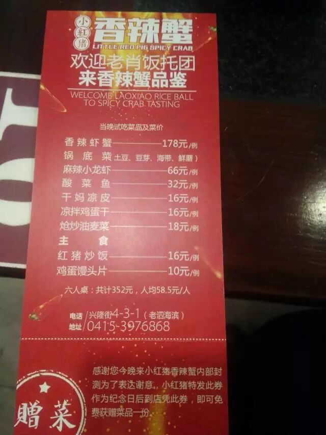 ☑感谢“小红猪香辣蟹”给我们提供的免费试吃机会!