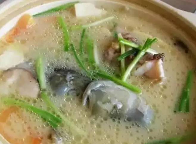 2、投入塔菜稍煮即可(喜欢辣食者可同时放入干辣椒一起炖)。做法五:姜葱鱼头煲
