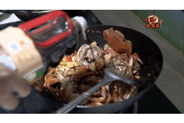 7.接着加入豆豉酱和刚才爆香的蟹块,继续翻炒入味。