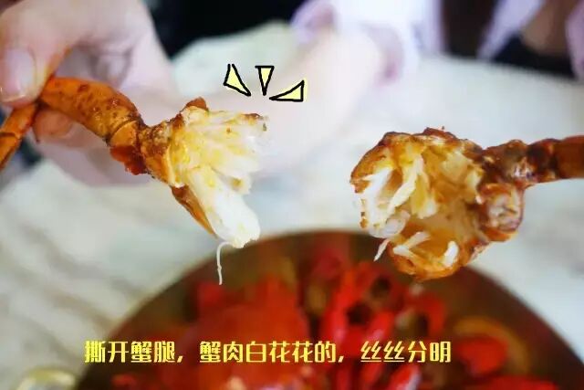 红通通油亮亮的大胖蟹,看得晴妹两只眼睛都发光了!拎起一只螃蟹迅速开吃,拿在手里沉甸甸的,扎扎实实的一块肉球啊,吸饱了香辣的酱汁,好吃到没朋友!