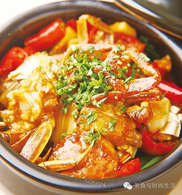 食材 大闸蟹2 只, 尖红椒3 0克,泡红椒10克 色拉油8 0 0 克, 辣酱2 0克,蒜、姜各10克,花椒油、葱、香油、干淀粉各5克,味精4克,盐2克,白糖1克,鲜汤500克