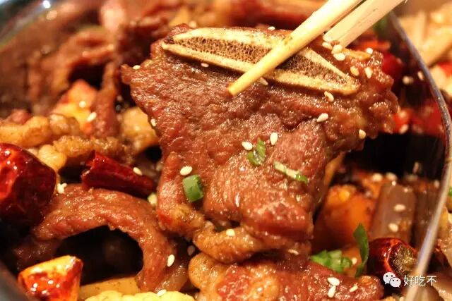 牛仔骨干锅,选用的高级牛排,经过捶打去腥等处理,口感竟然非常嫩滑!油香四溢。