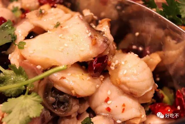 深深的干锅里,鲩鱼鱼片层层叠叠,都不见底,口感脆韧弹牙,吃的出太新鲜了!嫩白的鱼片,沾染了芝麻的清香,味道微辣中带着油香,但是吃起来完全不油腻!
