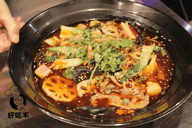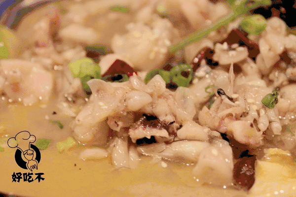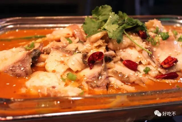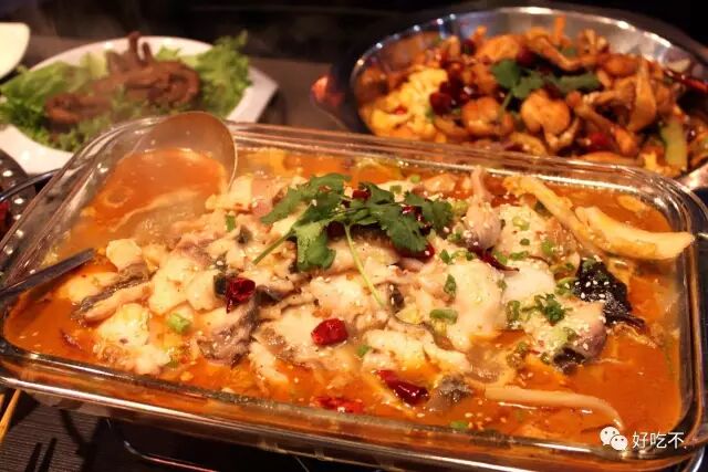 还有可以喝汤的新派水煮鱼。汤色成诱人的橙色,闻起来香辣,喝起来只微辣、醇厚浓郁、鲜美开胃,是好吃君喝过最特别的。