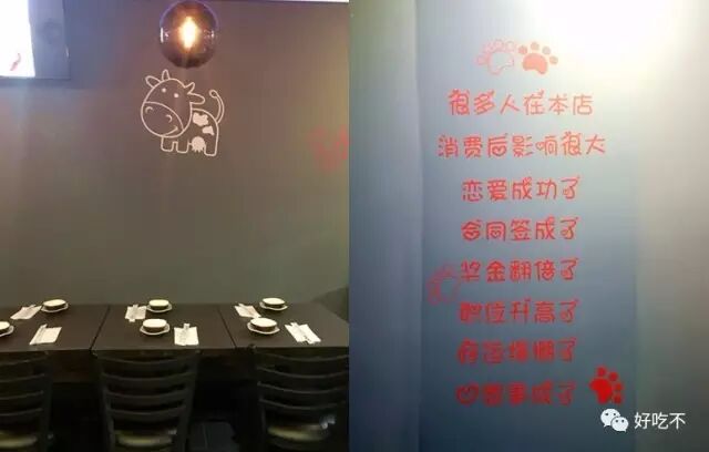 餐厅布置简单清爽,好多俏皮的标语,让人忍俊不禁。店面不大,饭点去还得排队哦~~