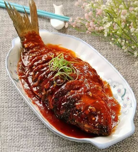 11、加少许湿淀粉收浓起锅浇在鱼身上即可。