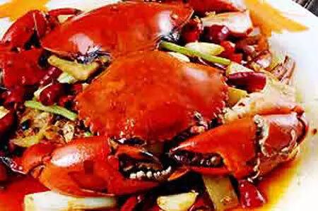 3、 将拍上玉米粉的蟹块放进热油中炸至金黄熟透。