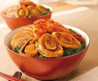 鲍鱼 6只、虾 8只、西兰花 适量、蚝油 30克、豉油 10克、海鲜酱 10克叉烧酱 10克、清鸡汤 400克、葱段 适量、姜片 适量