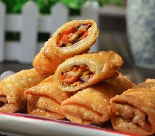 春卷皮30张、胡萝卜一根、黄瓜半根、香菇十来朵、油、盐、面粉、水